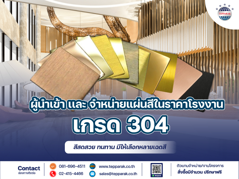 แผ่นสีสแตนเลส แผ่นมิลเลอร์สี แผ่นแฮร์ไลน์สี เกรด 304